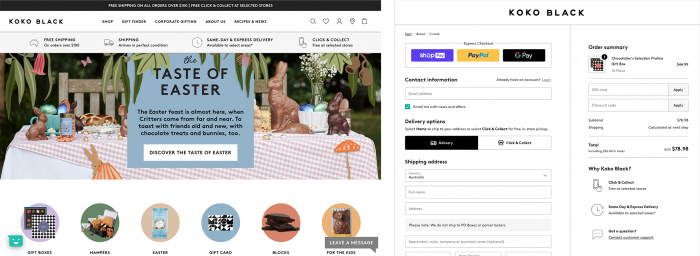 Homepage and checkout for Koko Black, Designed by Convert Digital